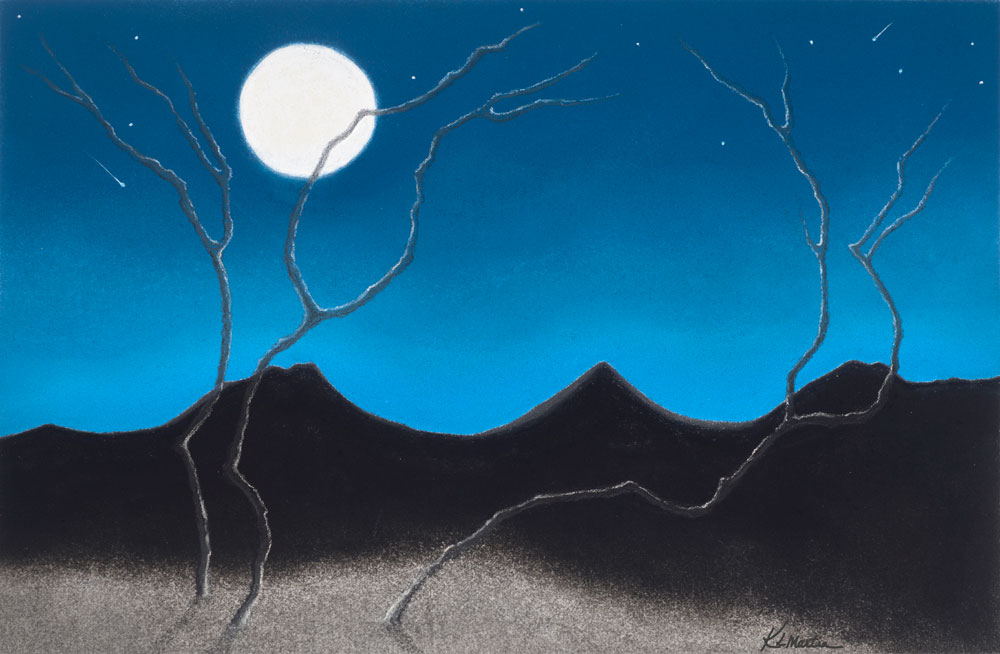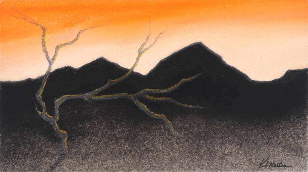 the mountains, sunsets and night skies of Santa Fe and surrounding area have inspired new work that brings together charcoal and soft pastel. Each medium gives me the freedom to leave the thinnest layer on the surface then slowly build to deep charcoal tones as well as creating layers of subtle color changes for the sunset and night sky drawings.